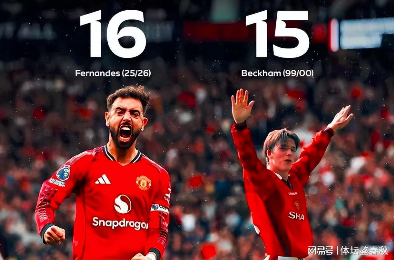 而这一次助攻意义远不止于此,算上之后送给库尼亚的直塞,B费本赛季的英超助攻数已经达到16个。这个数据让他正式超越1999—2000赛季的曼联传奇球星贝克汉姆,当年“万人迷”单赛季15次助攻的纪录,就这样在26年后被改写。